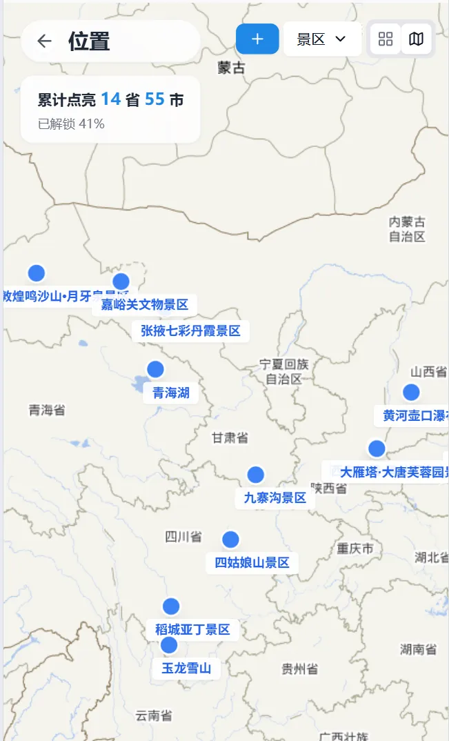 点亮的城市功能,会记录下你去过的每一座城市,看着地图上慢慢被点亮的标记,那些跨越山海的旅程,都变成了触手可及的成就感;还能统计去过的5A级景区,甚至支持自定义添加小众景点、打卡地,让每一段旅行的足迹,都有迹可循。